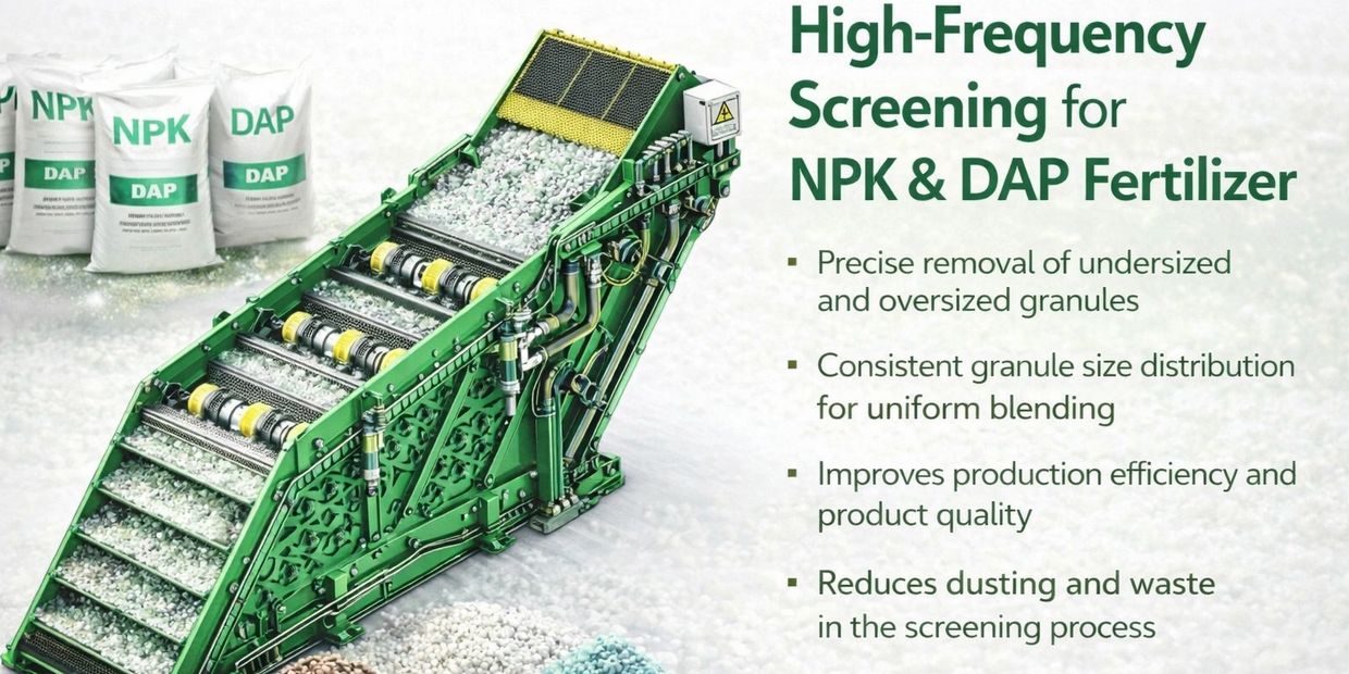 For NPK and DAP fertilizer plants, high-frequency screens provide a technically superior and economically justified solution for final granule classification, ensuring: